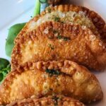 Empanadas brasileiras recheadas com carne temperada ou queijo (4 unidades).