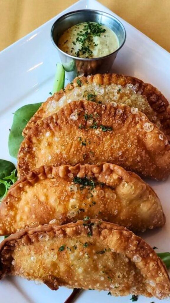 Brazilian-style empanadas stuffed with your choice of seasoned beef or cheese (4).